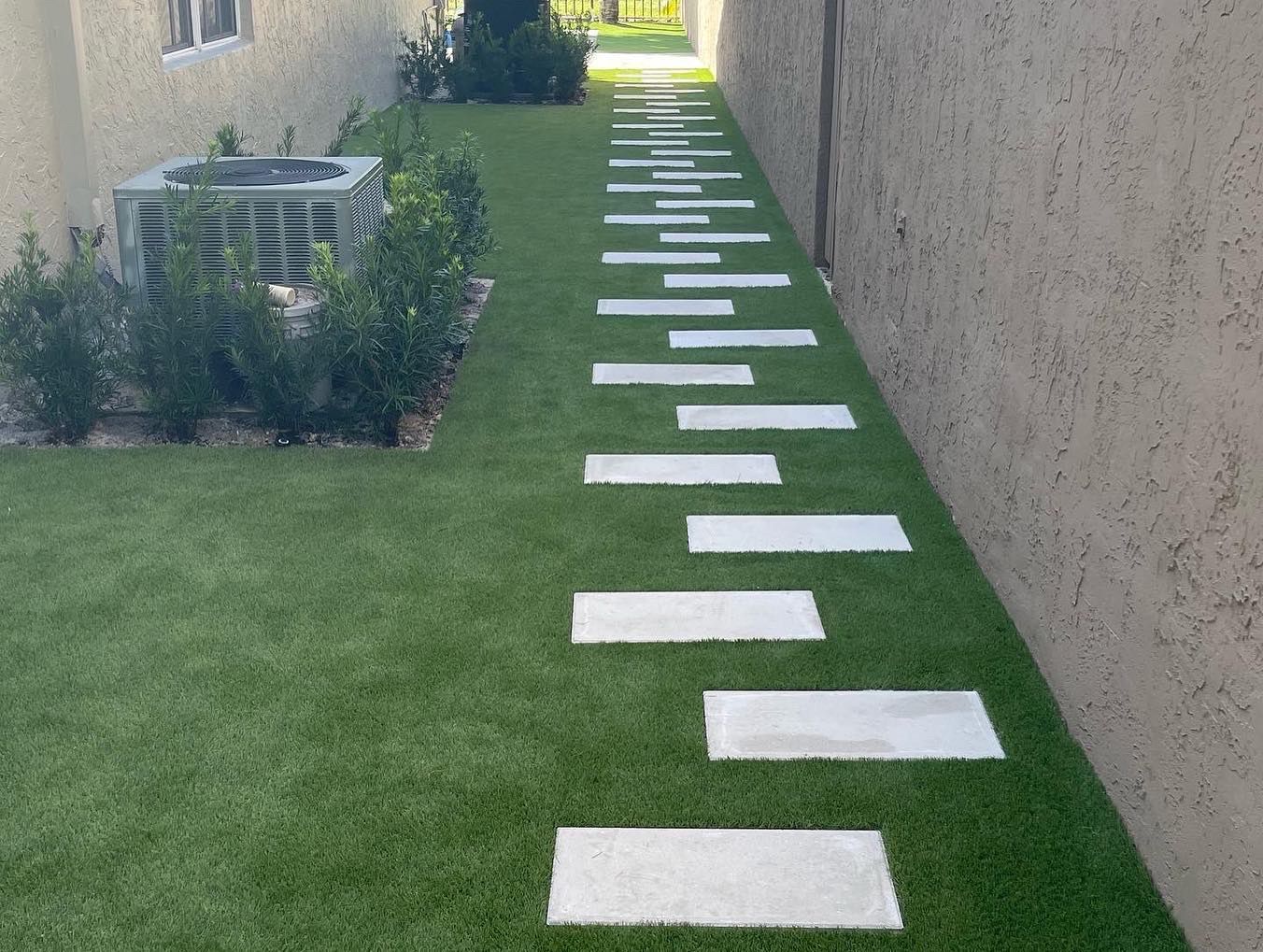 #turfdesign #steppingstones #walkwaydesign #backyardinspo #modernlandscape